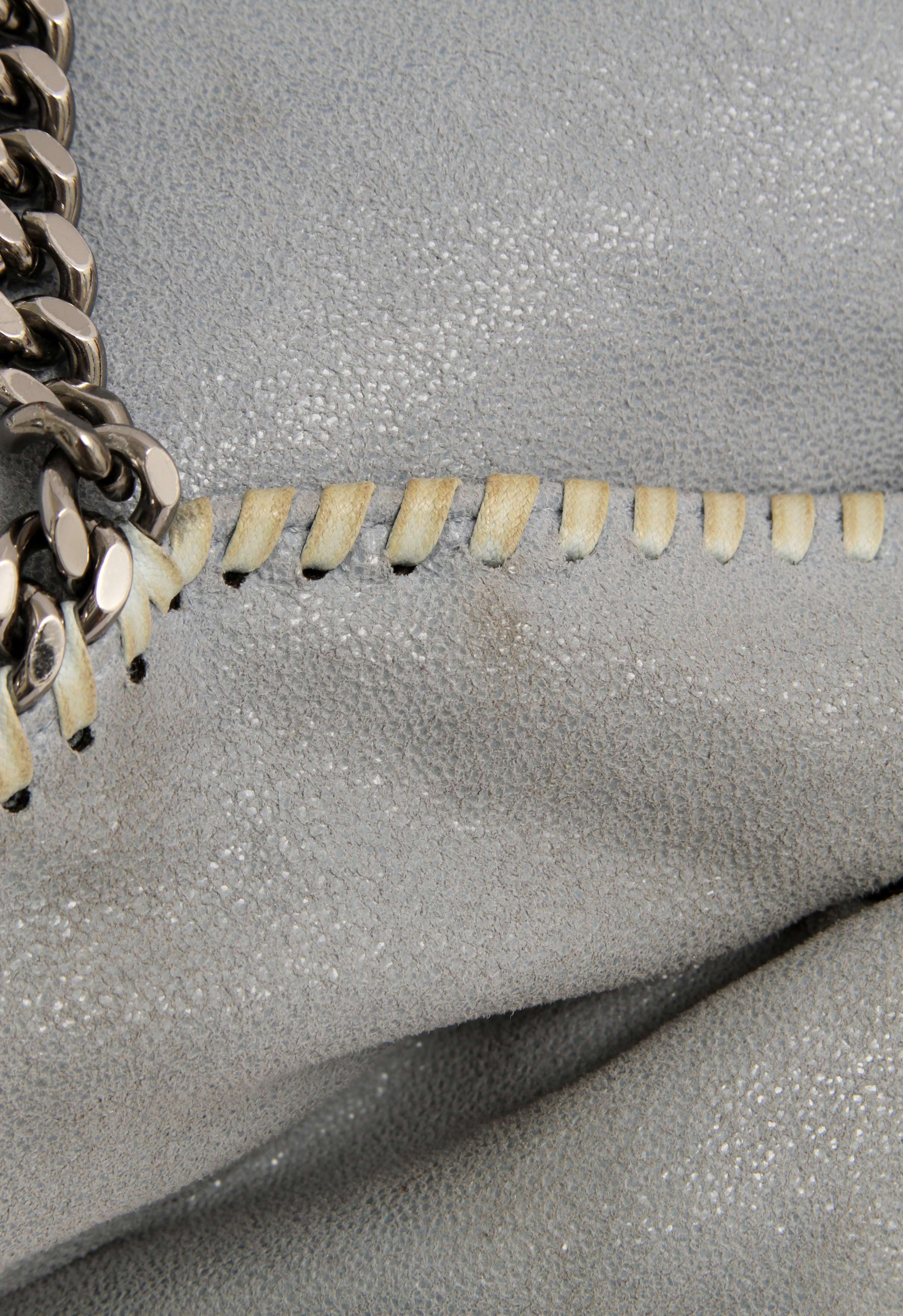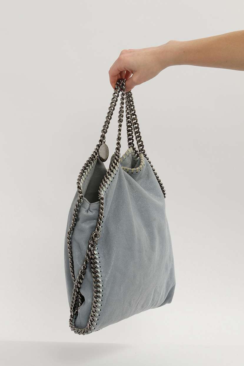 Stella McCartneyStella McCartney Falabella. Модель выполнена из эко-замши Shaggy Deer, тканевая подкладка с монограммой, золотистая фурнитура. Одно основное отделение, внутренний карман на молнии, застёжка на магнитной кнопке. Оснащена отстроченной цепочкой переходящей в две ручки и длинным плечевым ремнем-цепочкой. Украшена металлическим брелоком бренда.