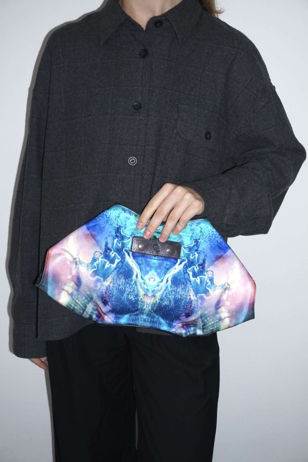 Alexander McQueenAlexander Mcqueen De Manta Medium. Модель выполнена из текстиля, подкладка из текстиля, металлическая фурнитура. Одно основное отделение на молнии, внутренний прорезной карман на молнии. Оснащена боковыми магнитами, регулирующие форму сумки. Комплект: Пыльник. Материал: Текстиль.