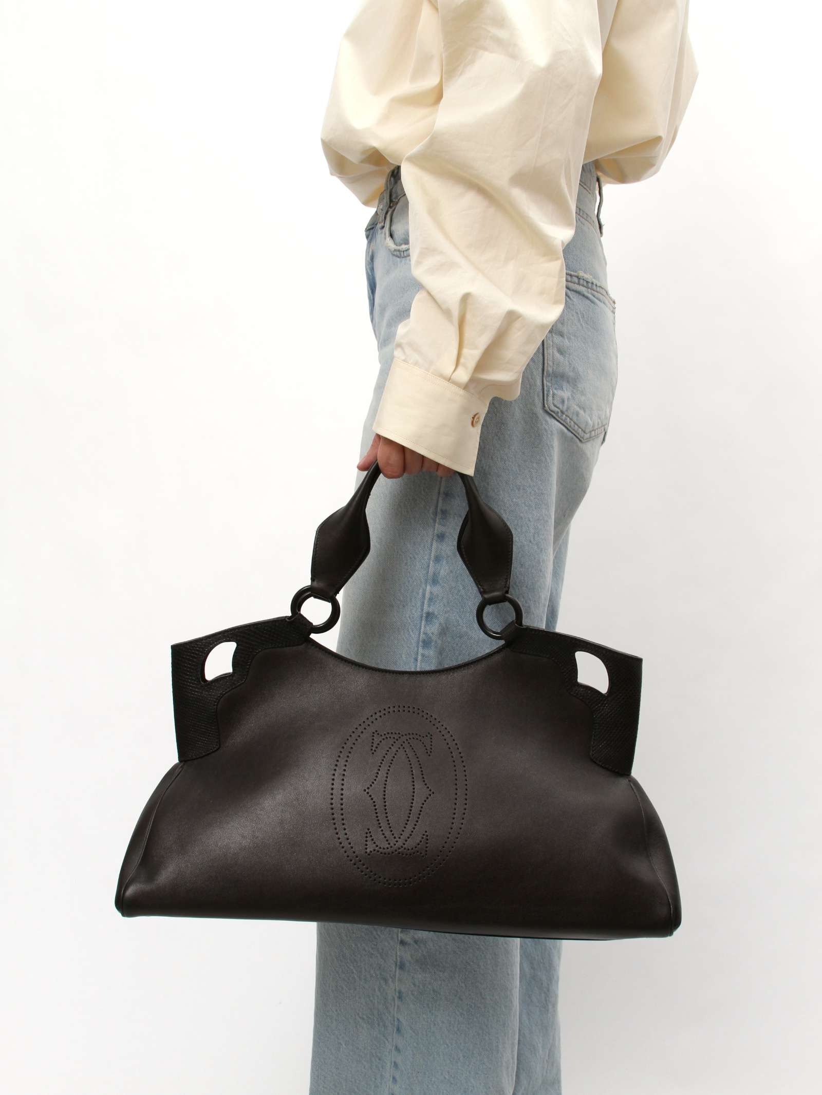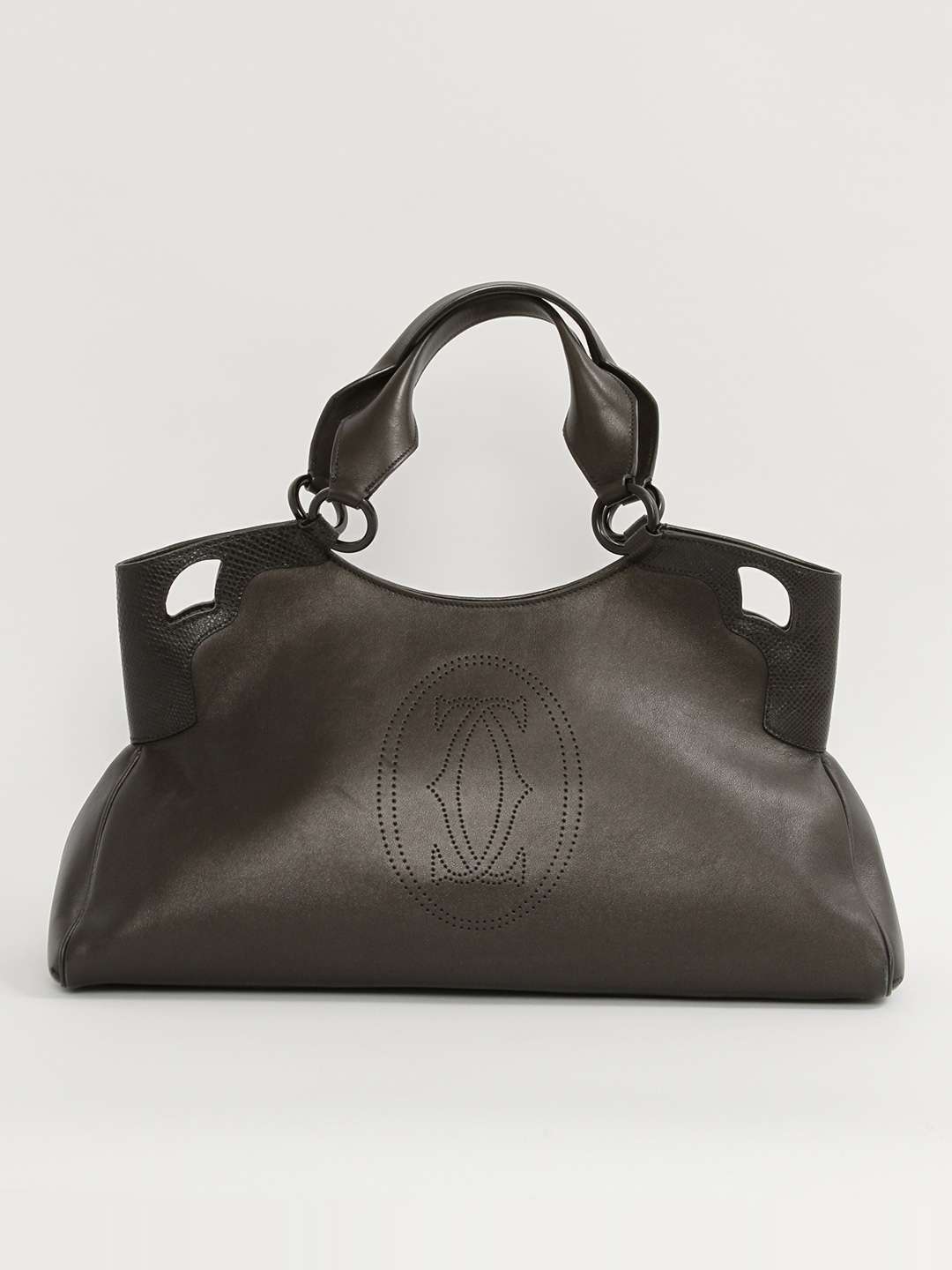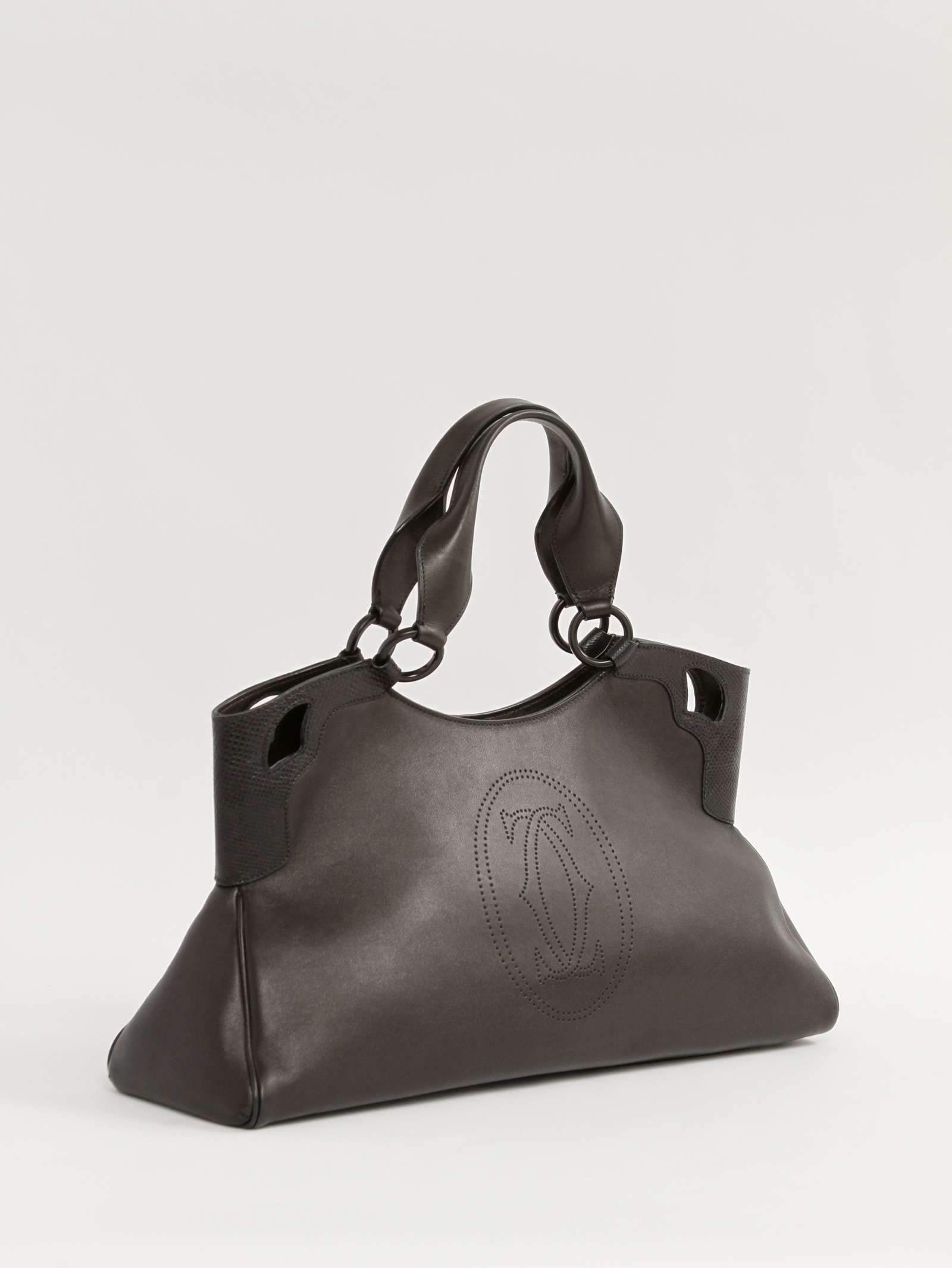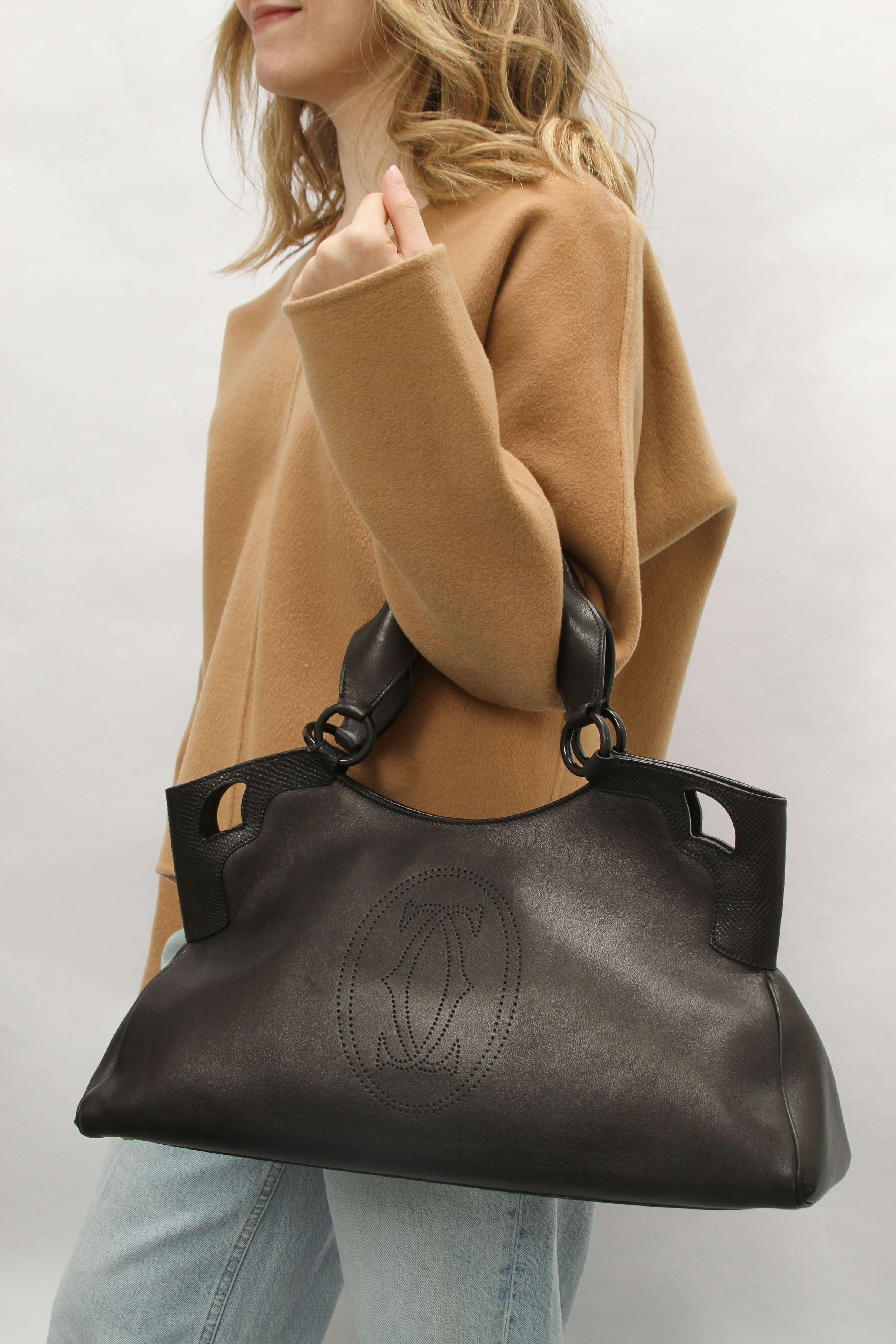 CartierCartier Marcello. Модель выполнена из натуральной кожи, текстильная подкладка, серебристая фурнитура. Одно основное отделение, внутренний карман на молнии, внутренний накладной карман, внешний карман на молнии. Оснащена двумя плечевыми ручками и защитными ножками в основании сумки.