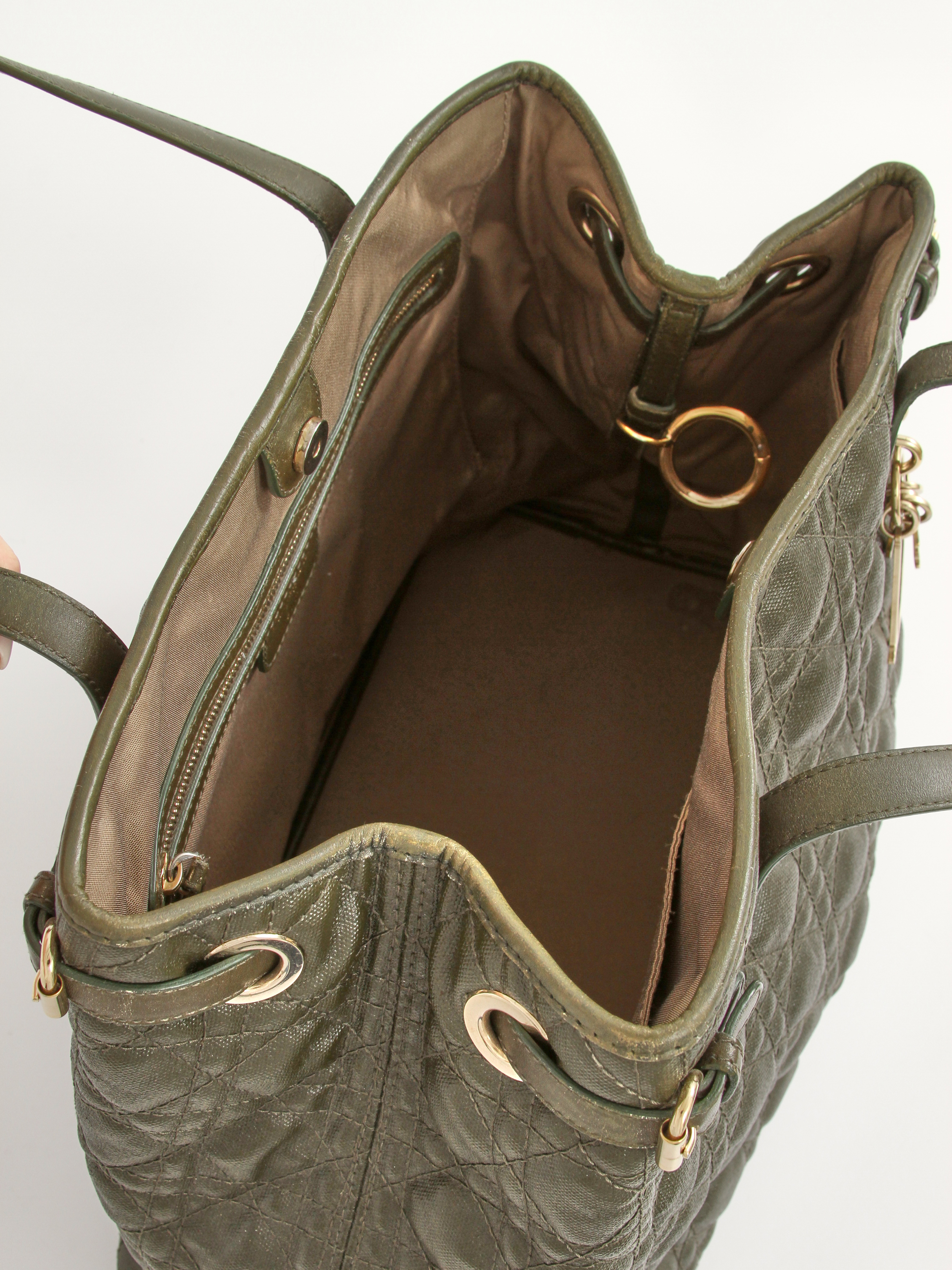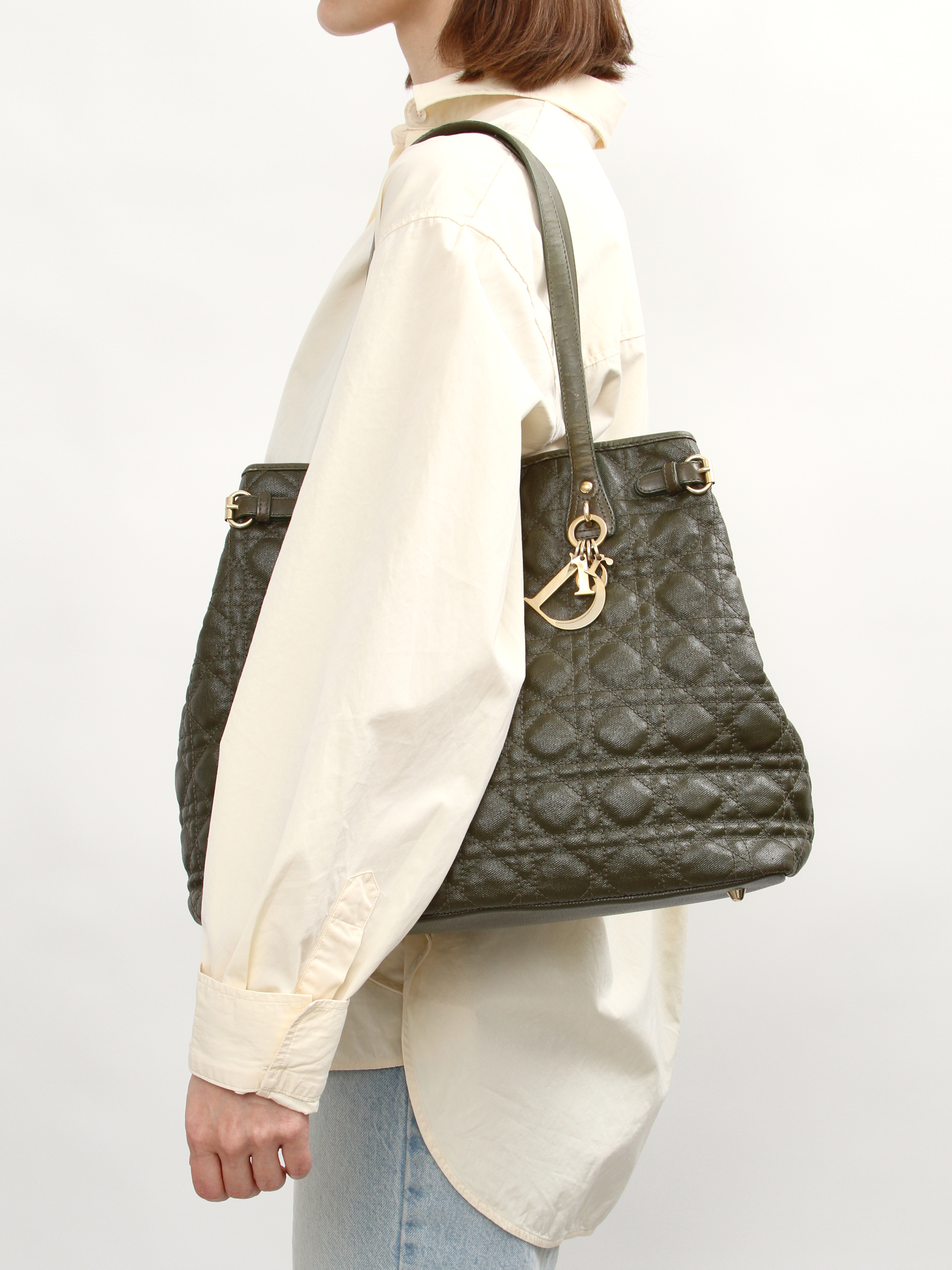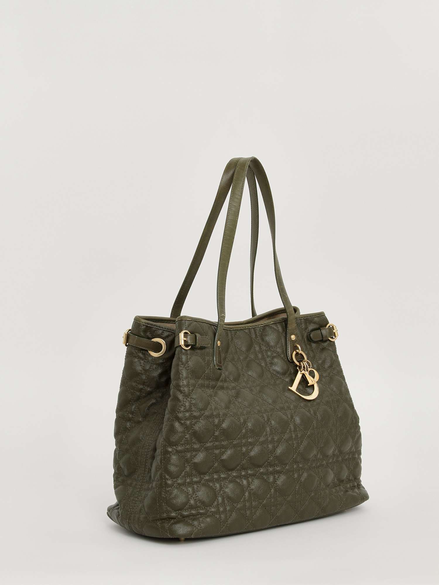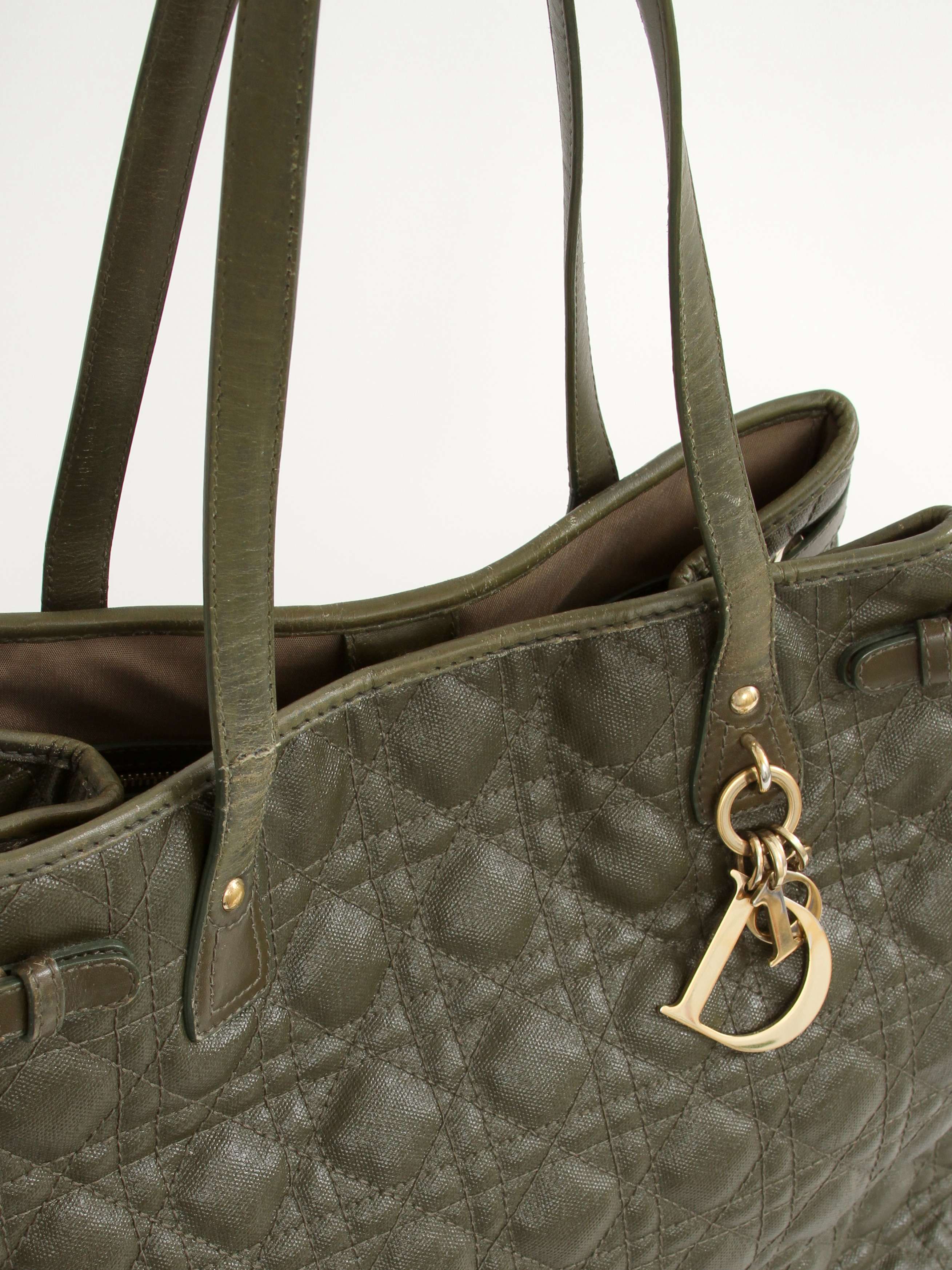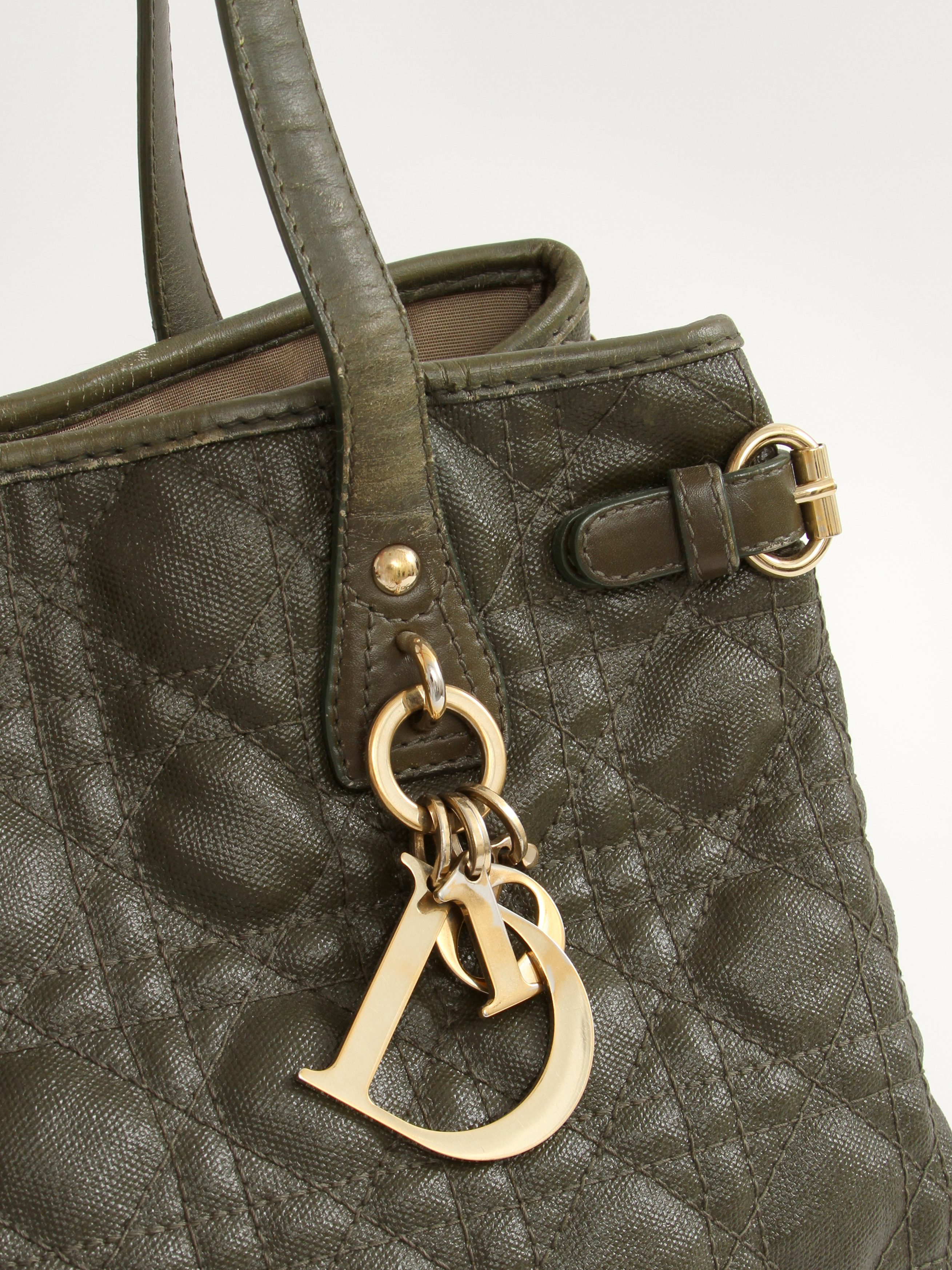 DiorChristian Dior Panarea. Модель выполнена из текстиля со стеганым узором, текстильная подкладка, золотистая фурнитура. Одно основное отделение, внутренний карман на молнии, два внутренних накладных кармана. Оснащена двумя короткими ручками. Украшена металлическим брелоком.