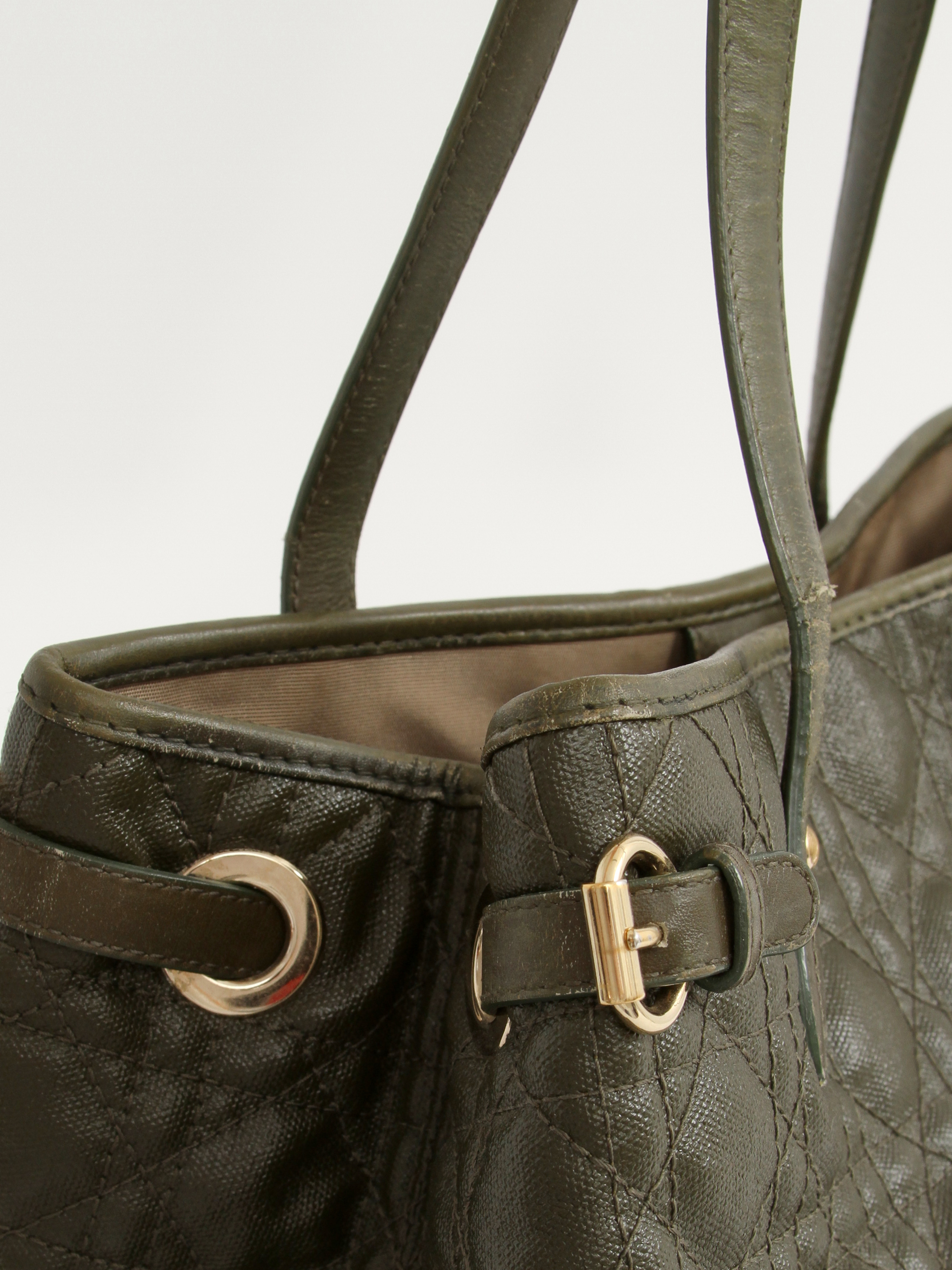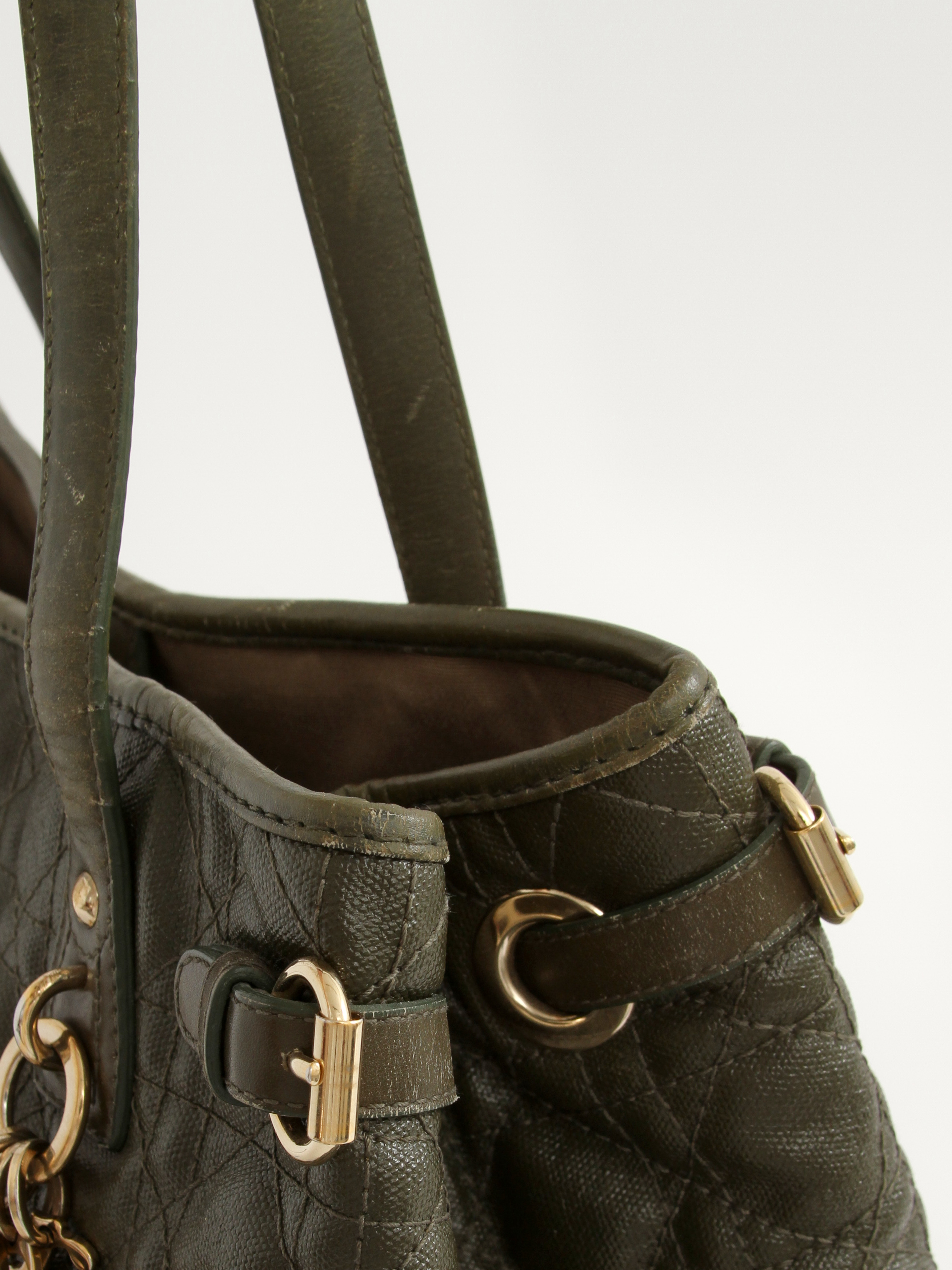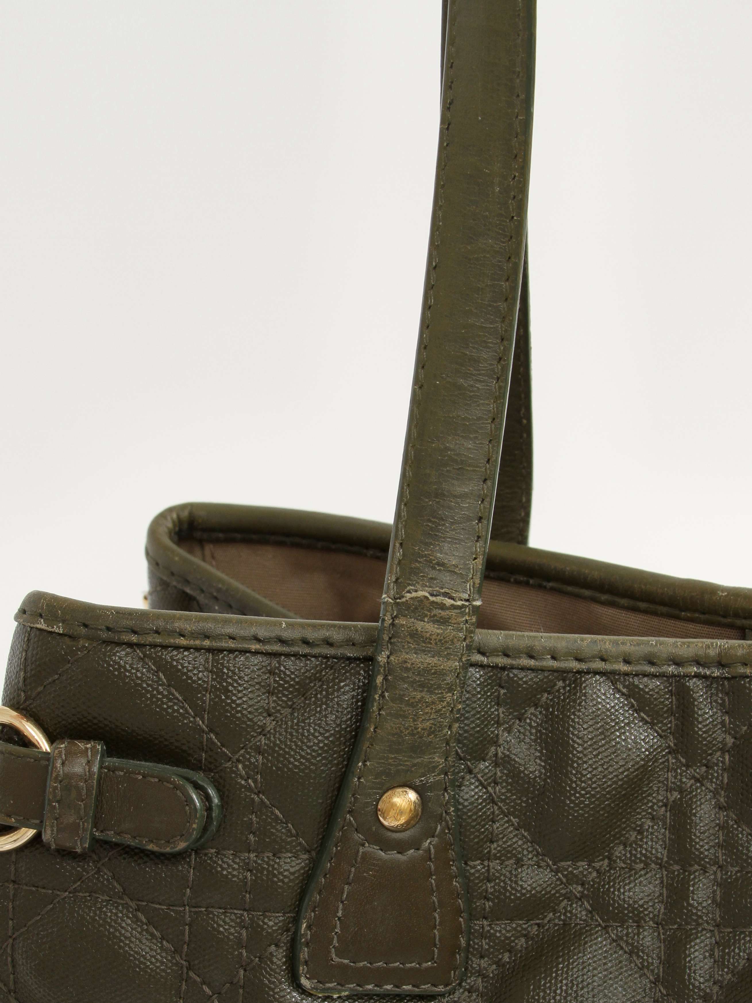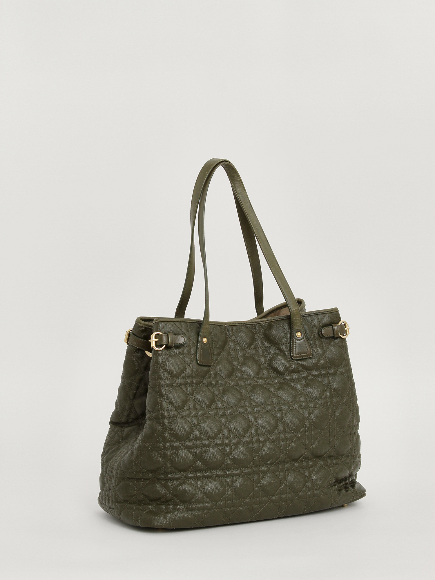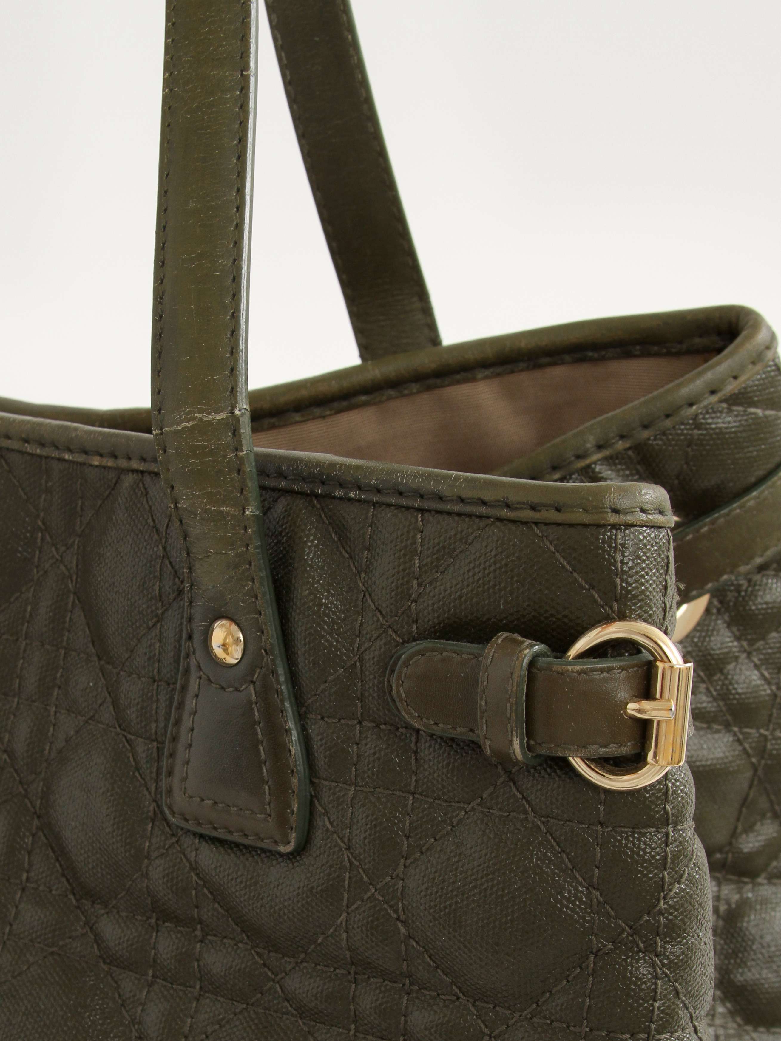 DiorChristian Dior Panarea. Модель выполнена из текстиля со стеганым узором, текстильная подкладка, золотистая фурнитура. Одно основное отделение, внутренний карман на молнии, два внутренних накладных кармана. Оснащена двумя короткими ручками. Украшена металлическим брелоком.