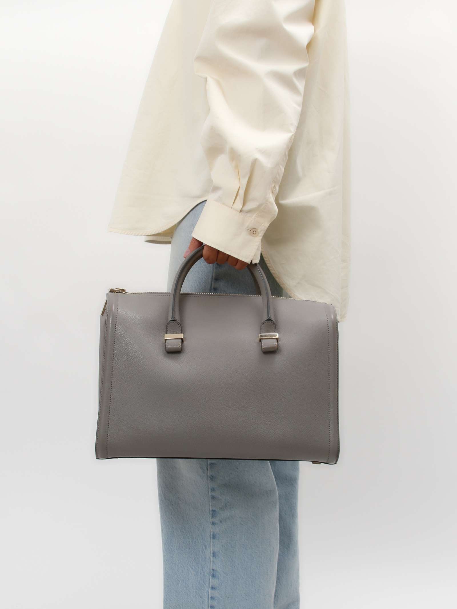 Victoria BeckhamVictoria Beckham Seven. Модель выполнена из натуральной кожи, текстильная подкладка, золотистая фурнитура. Три отделения. Оснащена двумя короткими ручками.