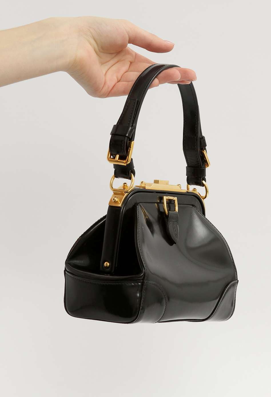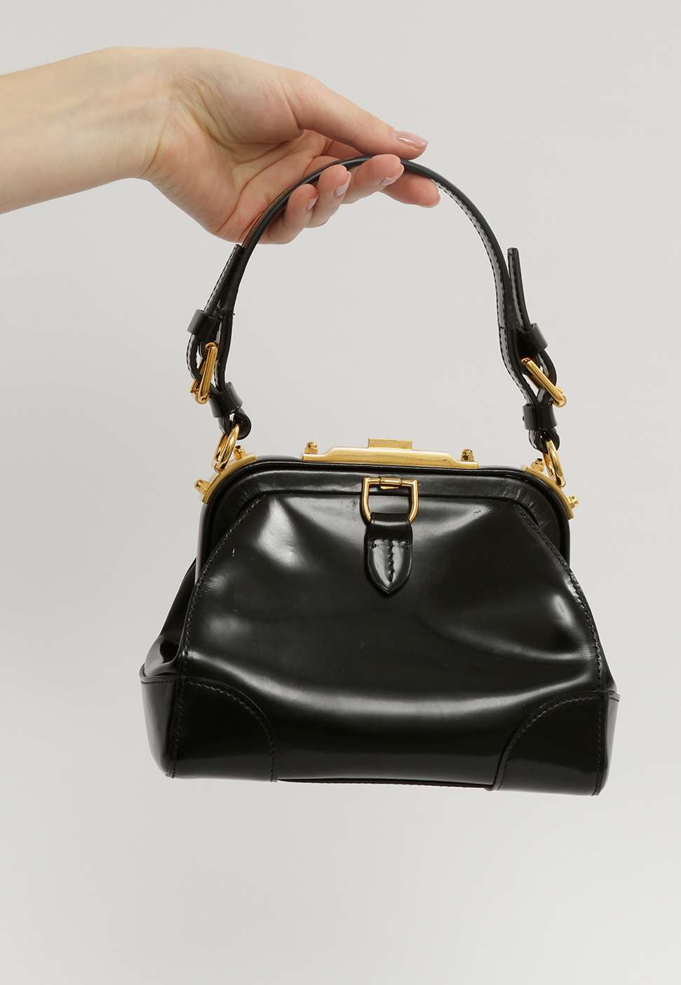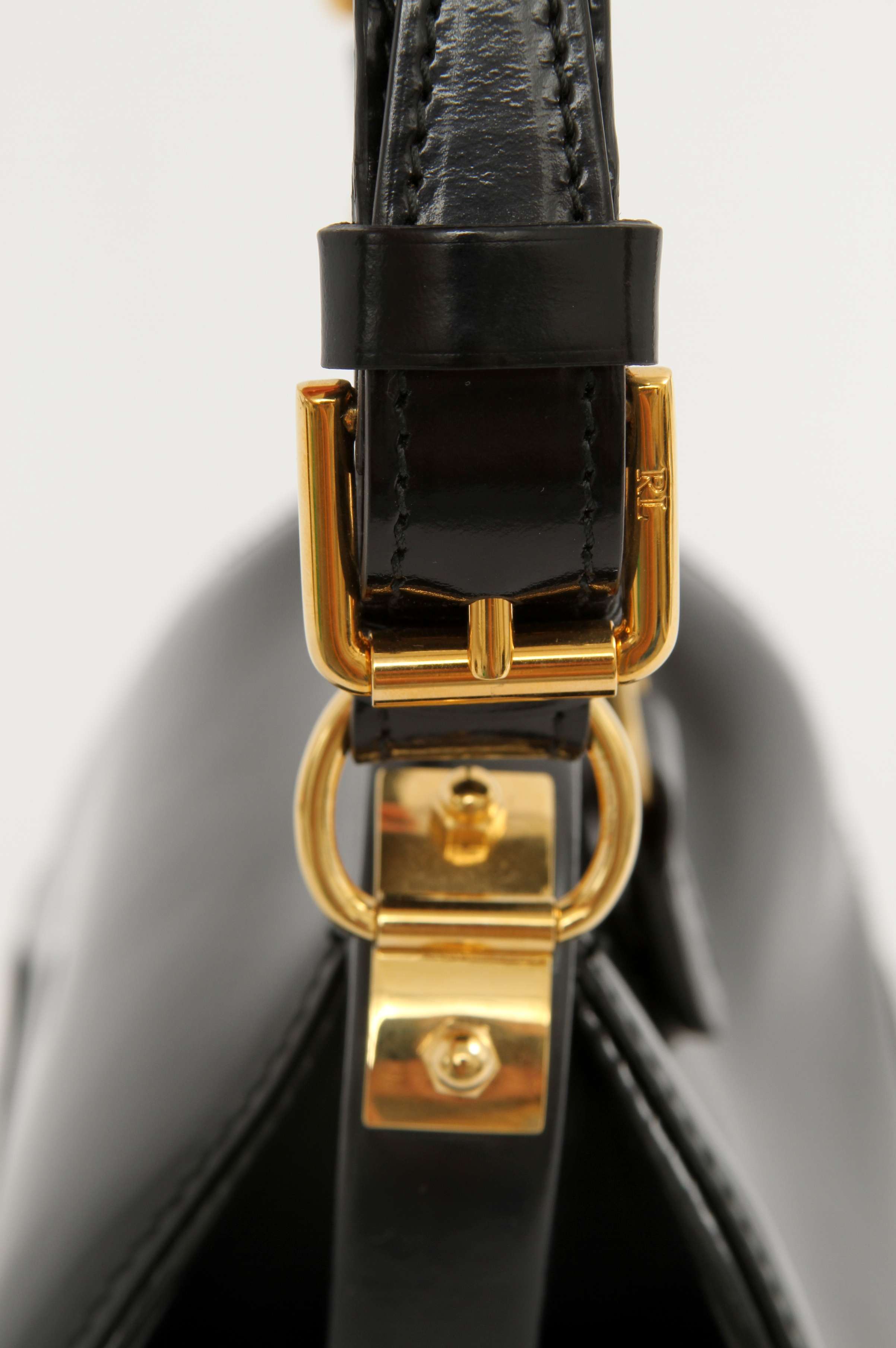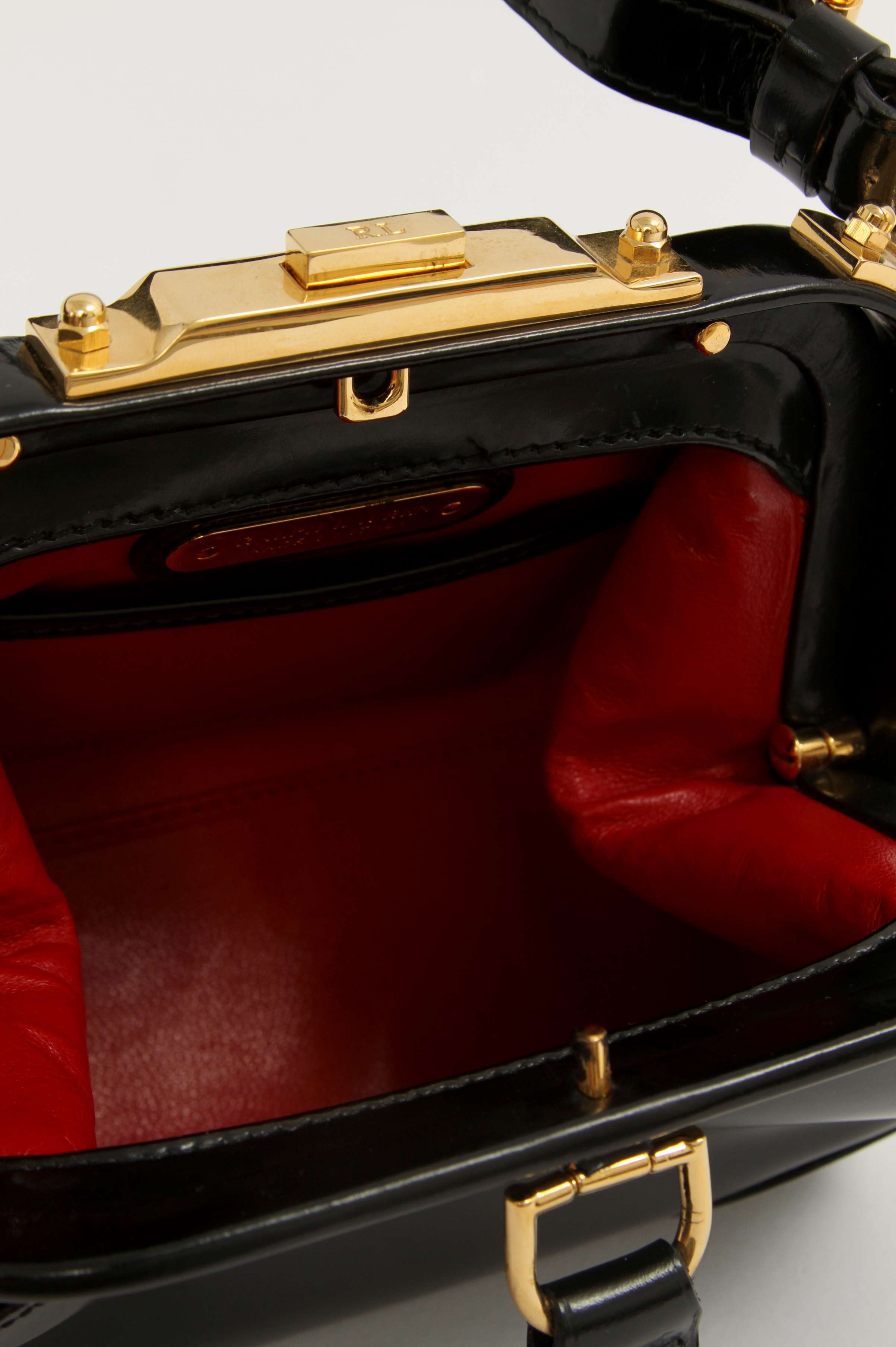 Ralph LaurenRalph Lauren Leather Bag. Модель выполнена из лакированной кожи, подкладка из кожи, золотистая фурнитура. Одно основное отделение, внутренний накладной карман. Оснащена короткой ручкой. Украшена металлической застежкой.