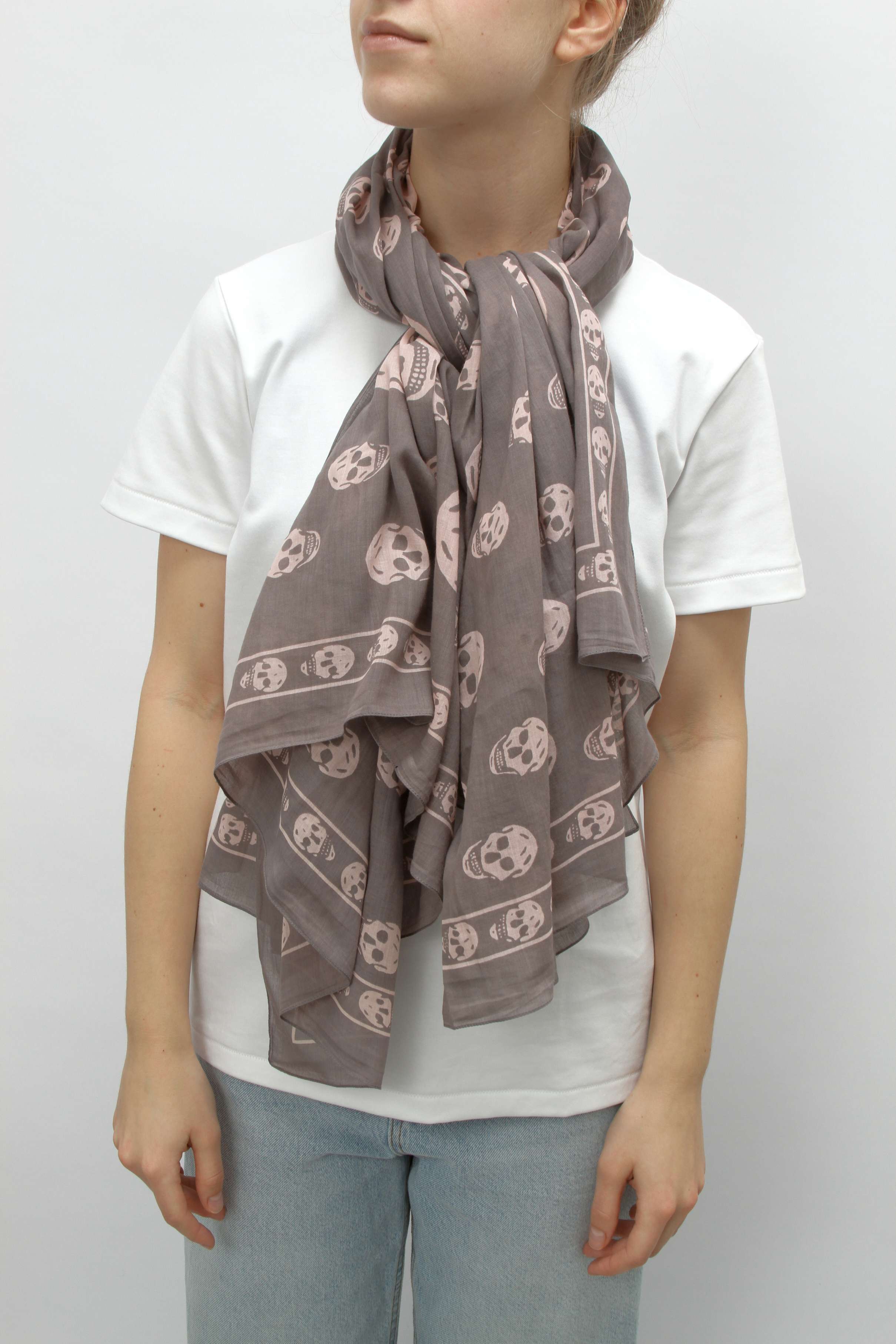 Alexander McQueenAlexander Mcqueen Scarf. Модель украшена принтом в виде черепов и логотипом бренда.