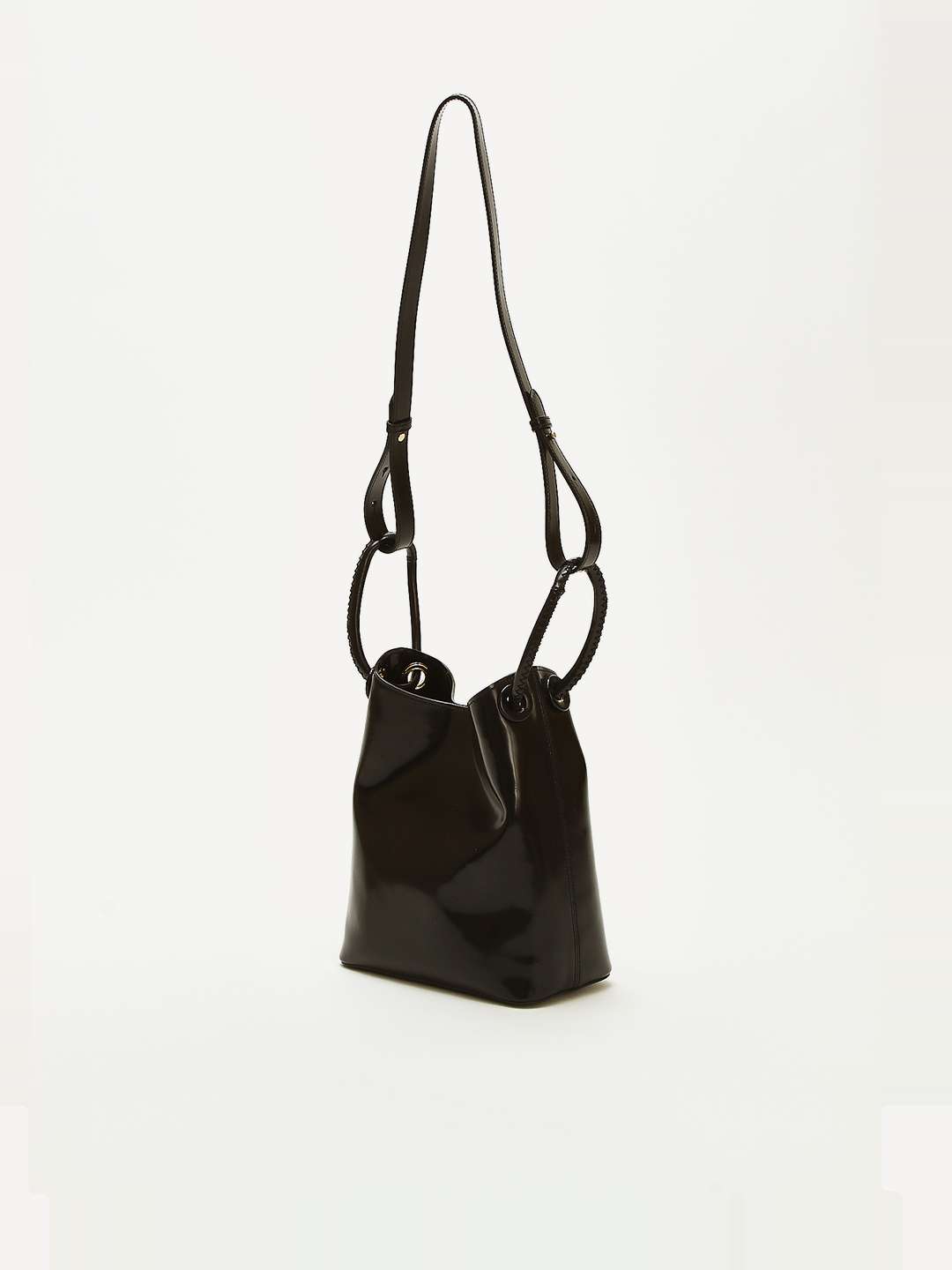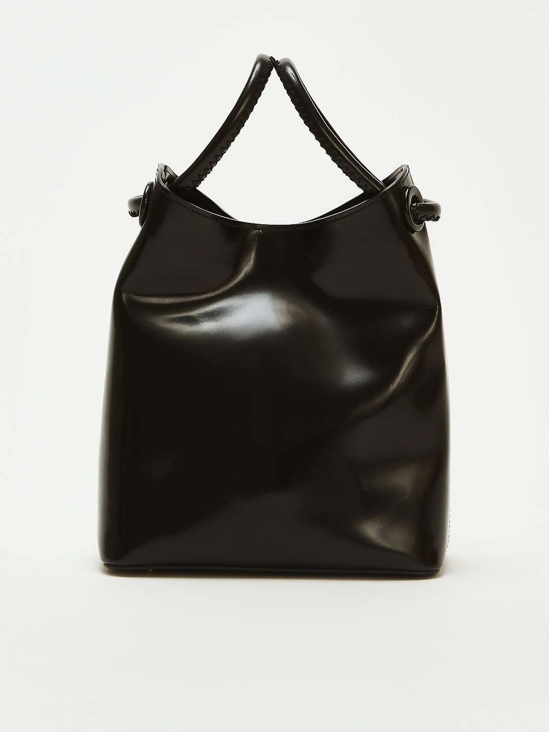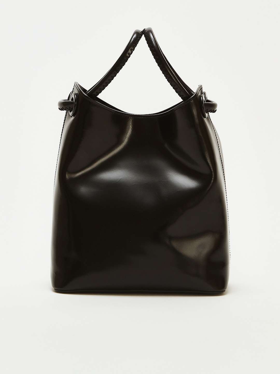 EllemeElleme Bucket Вместительная сумка Bucket от Elleme. Черный цвет, золотистая фурнитура. Модель выполнена из гладкой лаковой кожи, оснащена двумя круглыми ручками. Одно основное отделение и внутренние карманы. Закрывается на магнитную застежку. В комплекте съемный плечевой ремень с возможностью регулировки и фирменный пыльник.