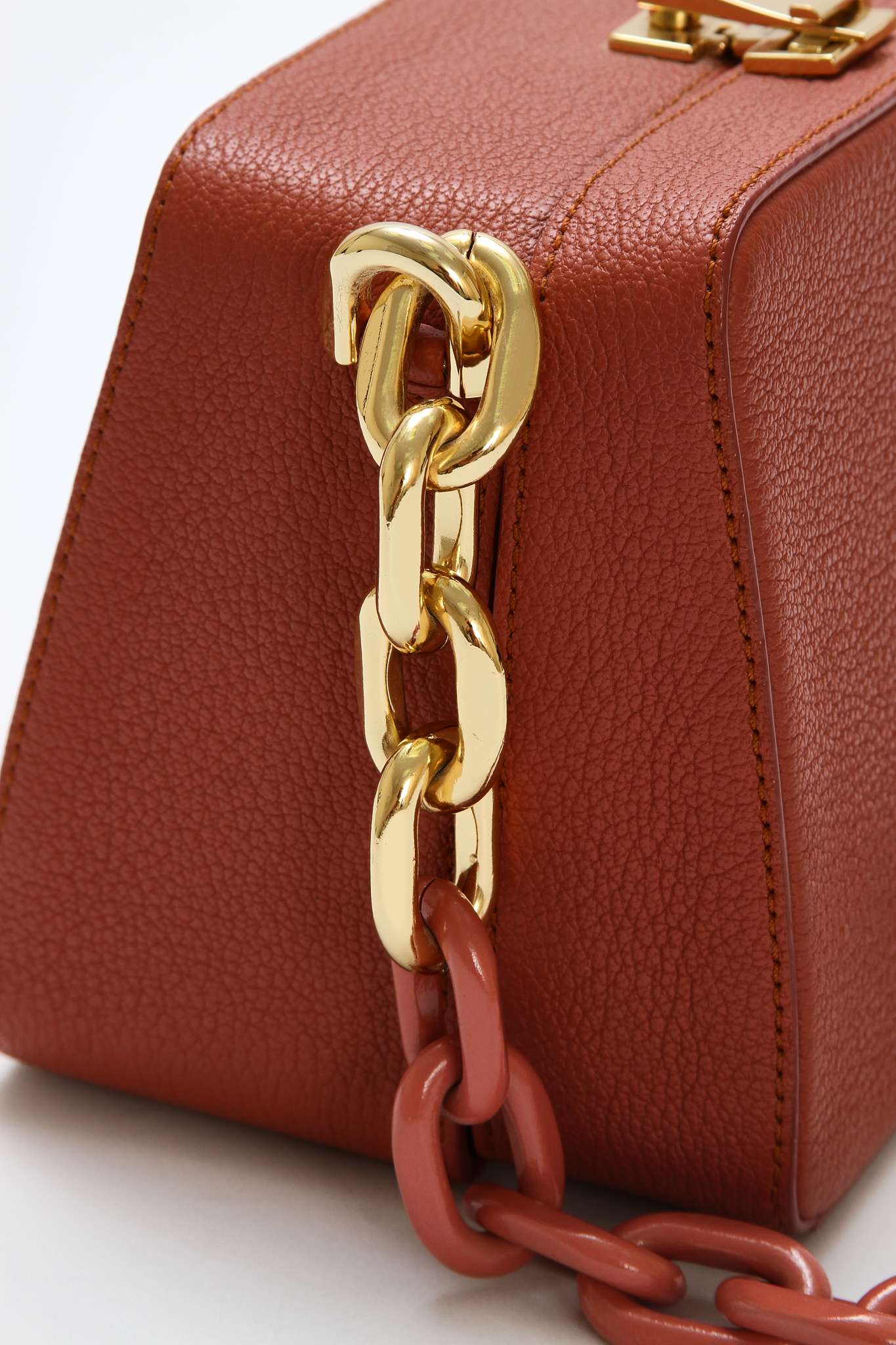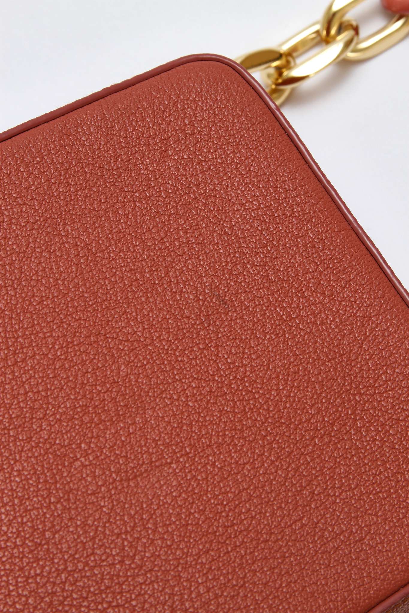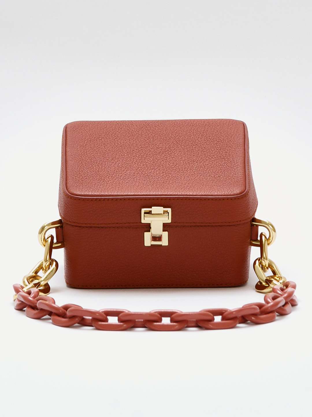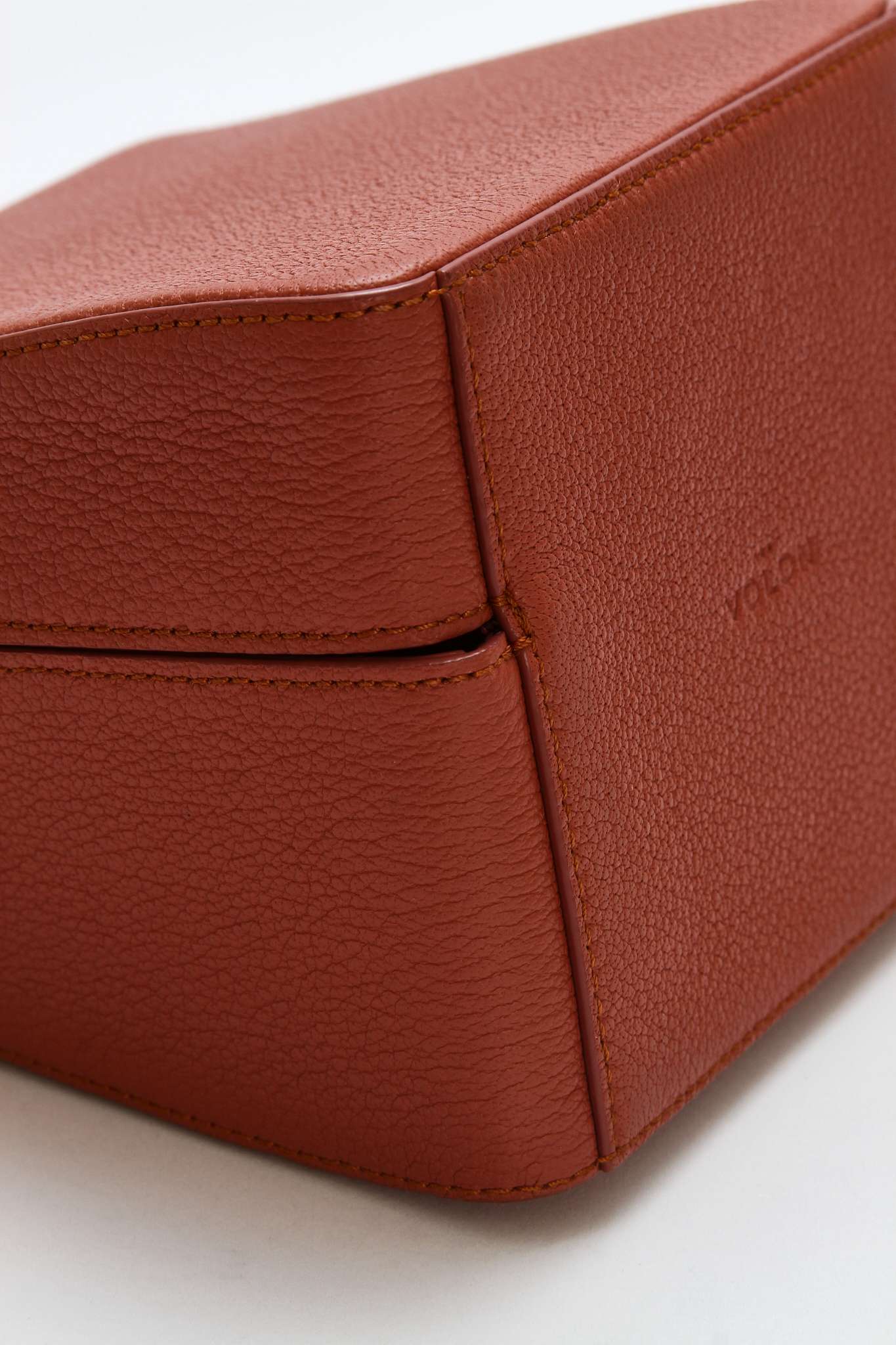 The VolonThe Volon Cube. Модель выполнена из зернистой кожи, текстильная подкладка, золотистая фурнитура. Одно основное отделение, внутренний накладной карман. Оснащена верхней цепочкой с крупными звеньями. Есть нюанс: незначительные следы носки в основании сумки. Материал: Натуральная кожа.
