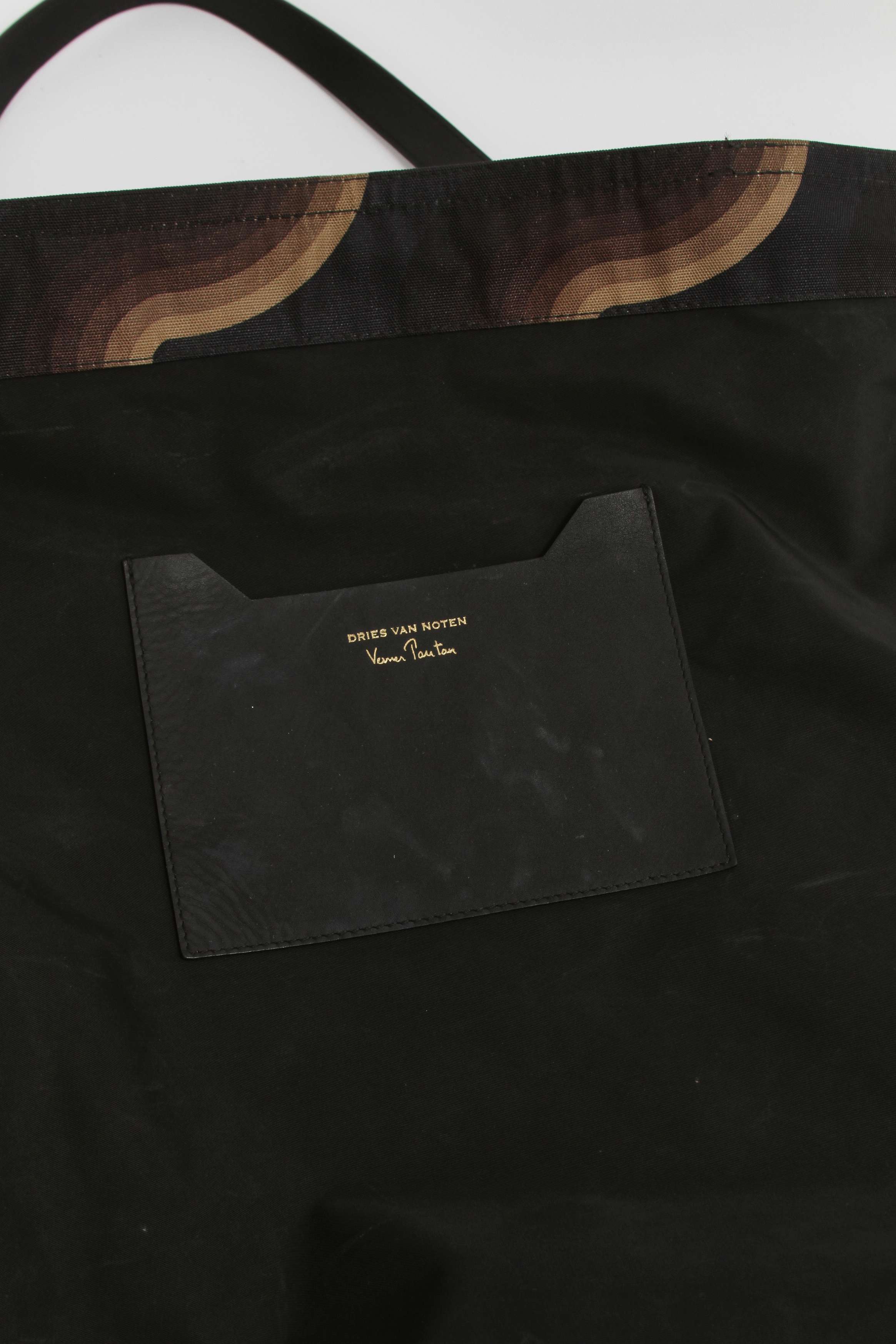 Dries Van NotenDries Van Noten Fabric. Модель выполнена из текстиля, текстильная подкладка. Одно основное отделения, два внутренних накладных кармана. Оснащена двумя кожаными ручками. Украшена узорами на текстиле. Материал: Текстиль. Есть нюанс: следы носки на подкладке.