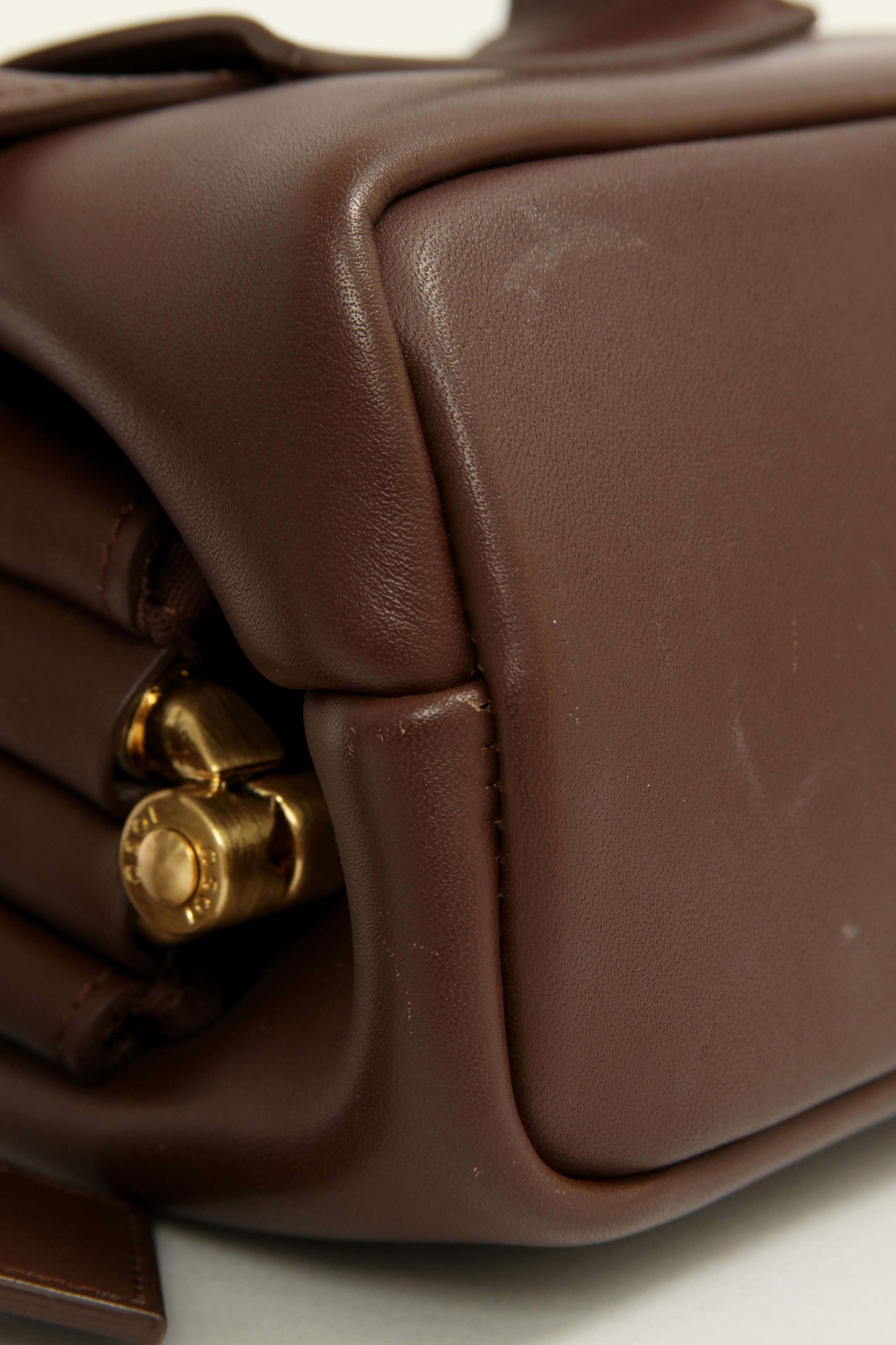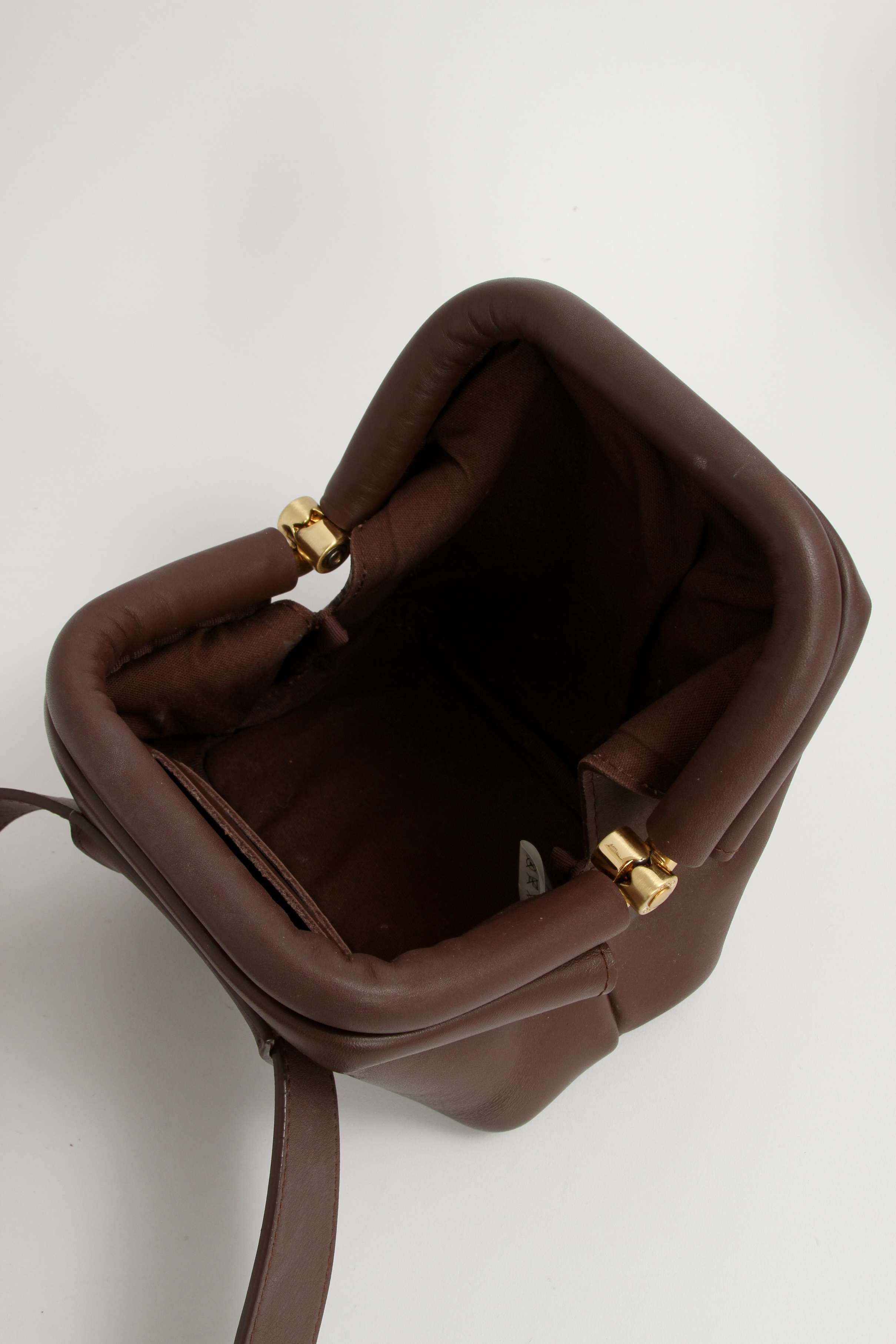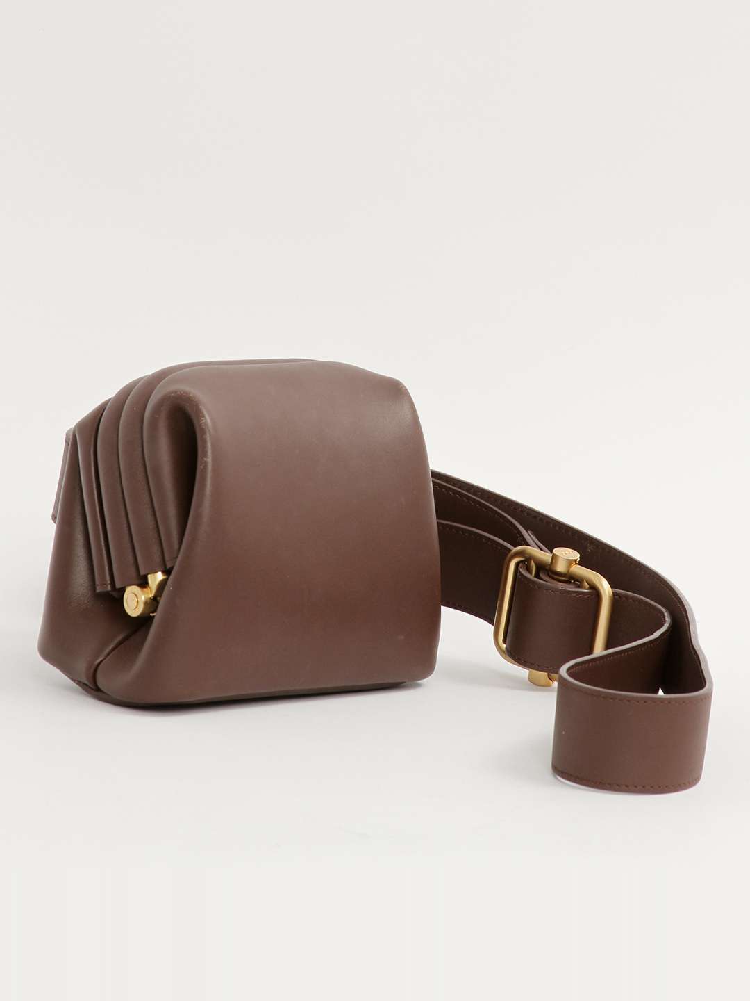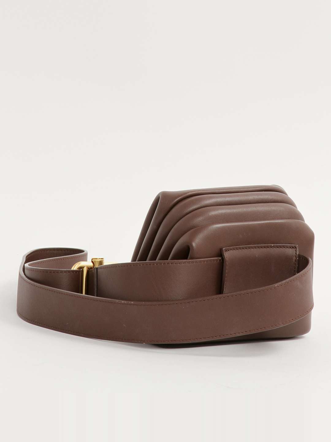 OsoiOsoi Brot. Модель выполнена из натуральной кожи, текстильная подкладка, золотистая фурнитура. Одно основное отделение, деления для карт. Оснащена широким поясным ремнем. Украшена тисненым логотипом бренда.