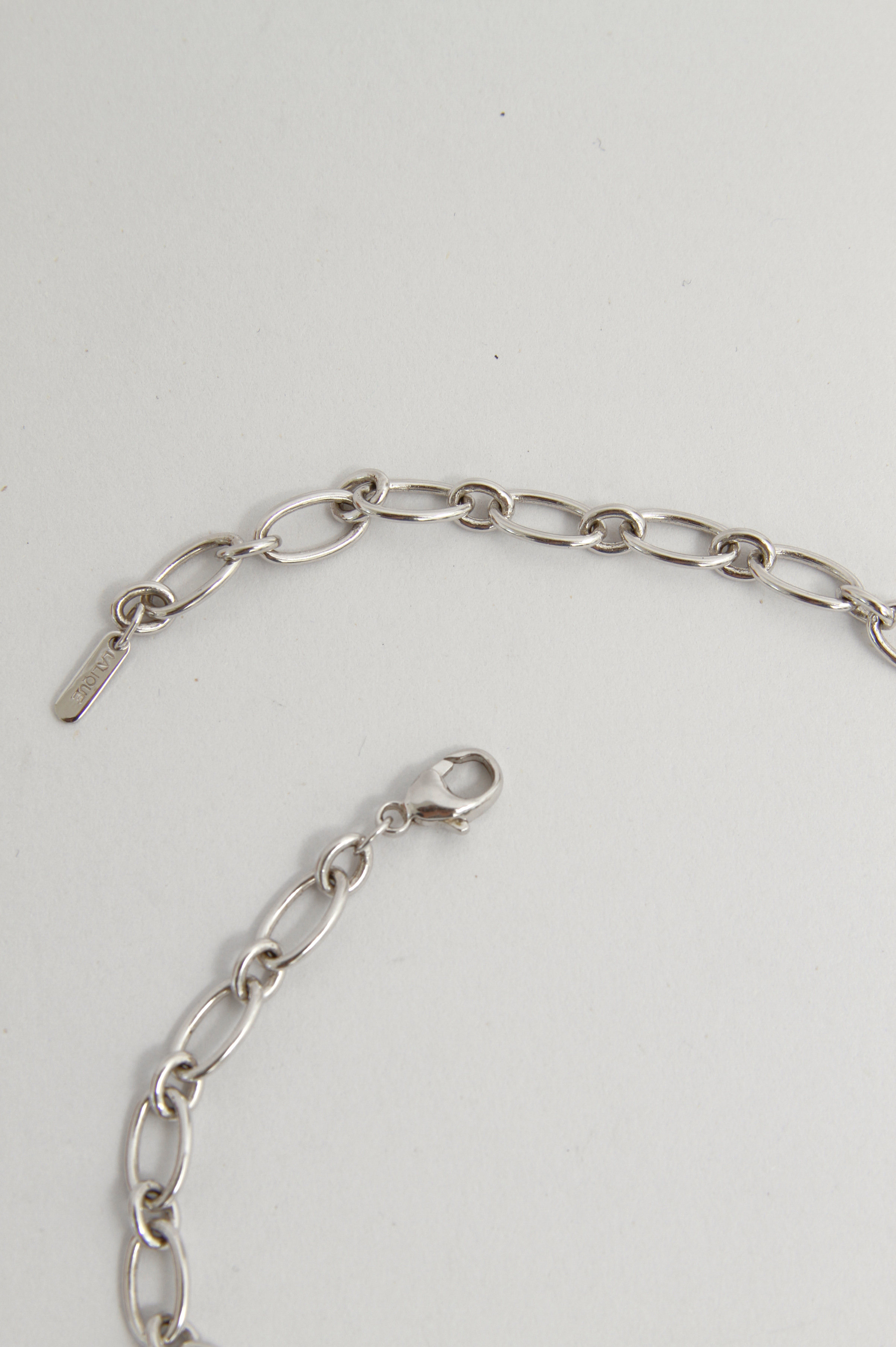 LaliqueLalique Necklace. Модель выполнена из серебристого металла. Украшена вставками из хрусталя и тиснением логотипа бренда.
